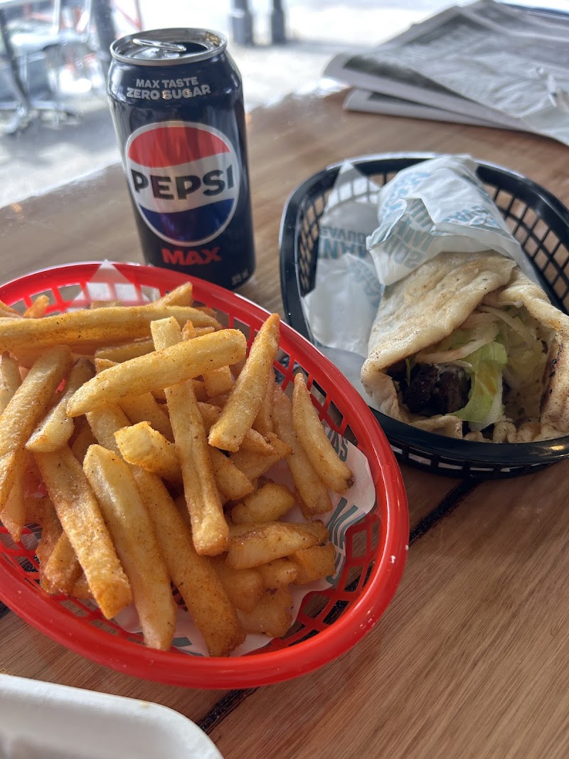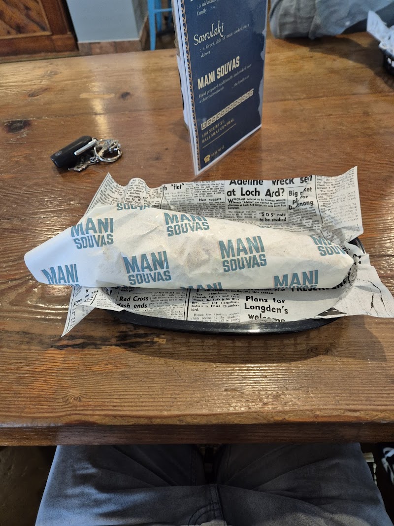 Mani Souvas charcoal Souvlakis made with the best quality locally sourced lamb & chicken, marinated in house with tradtional Greek seasonings. Saganaki or felafel vegetarian options. Old school turkish bread, and fresh house made salads & dips